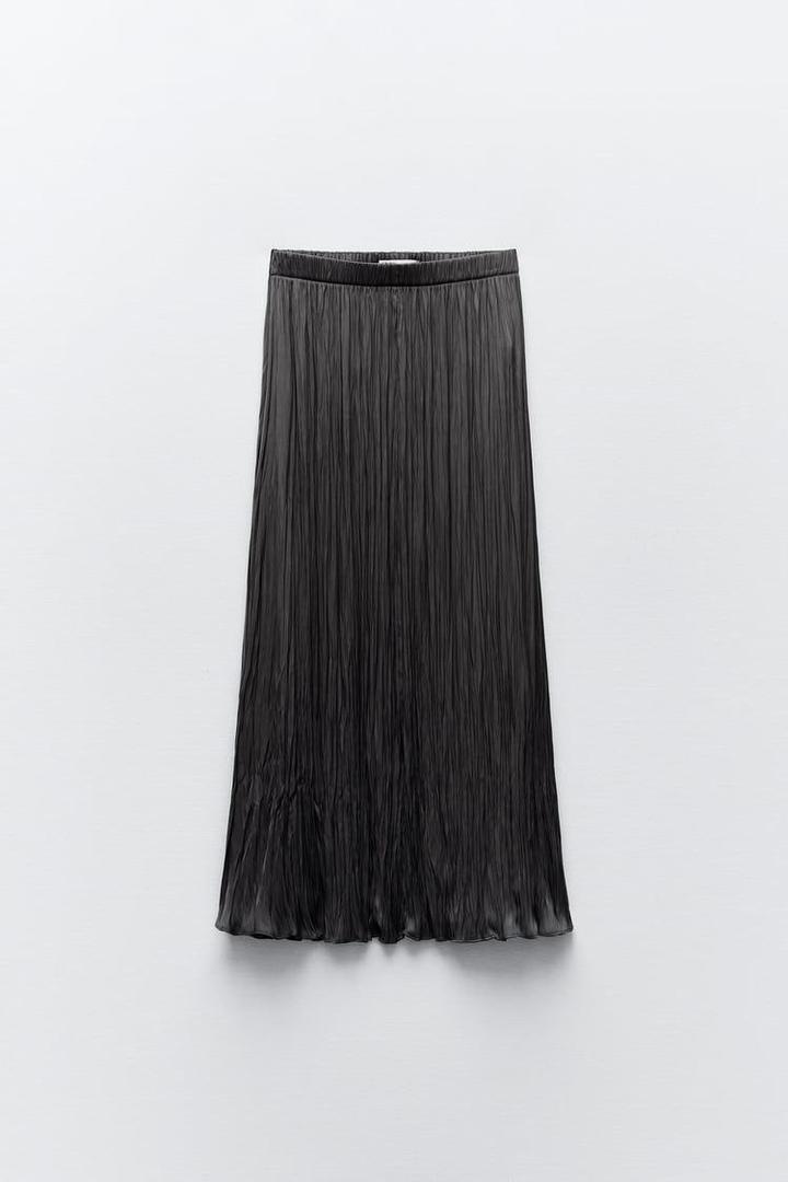 Плиссированная юбка миди от ZARA. Цвет графит. Артикул: 600751