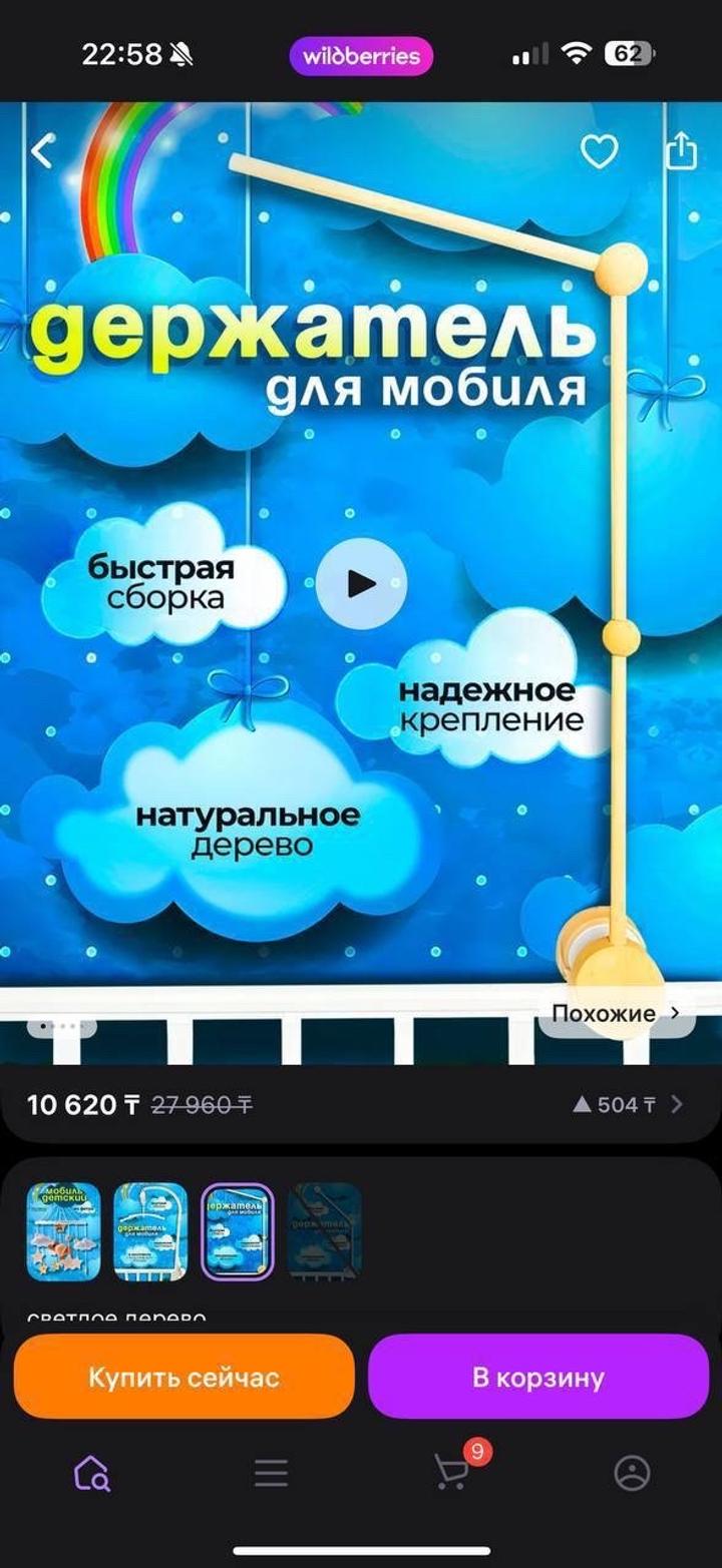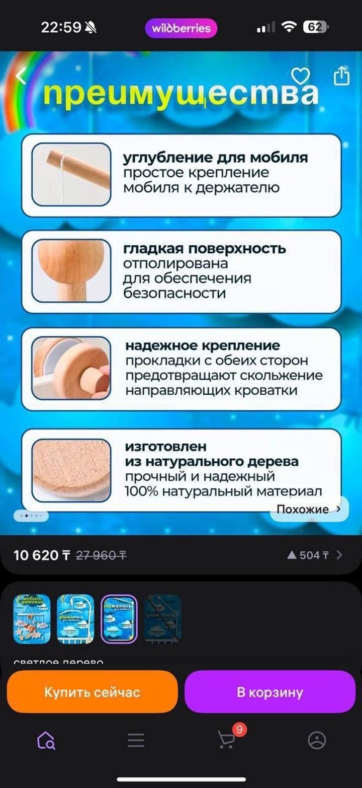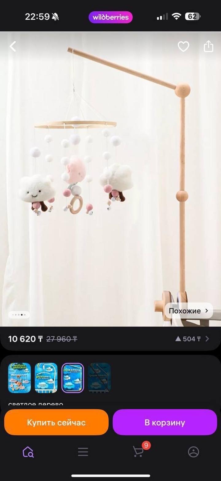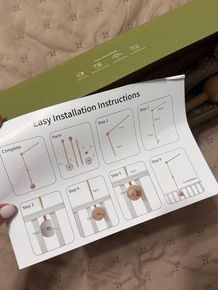 Деревянный, матовый, не покрыт лаком, а идеально отшлифован! Один новый, не открыт т.к. случайно заказала два. С коробкой, пакетами, инструкцией. Подходит всем мобилям и на любую кроватку. Можно на подарок. Артикул: 600778