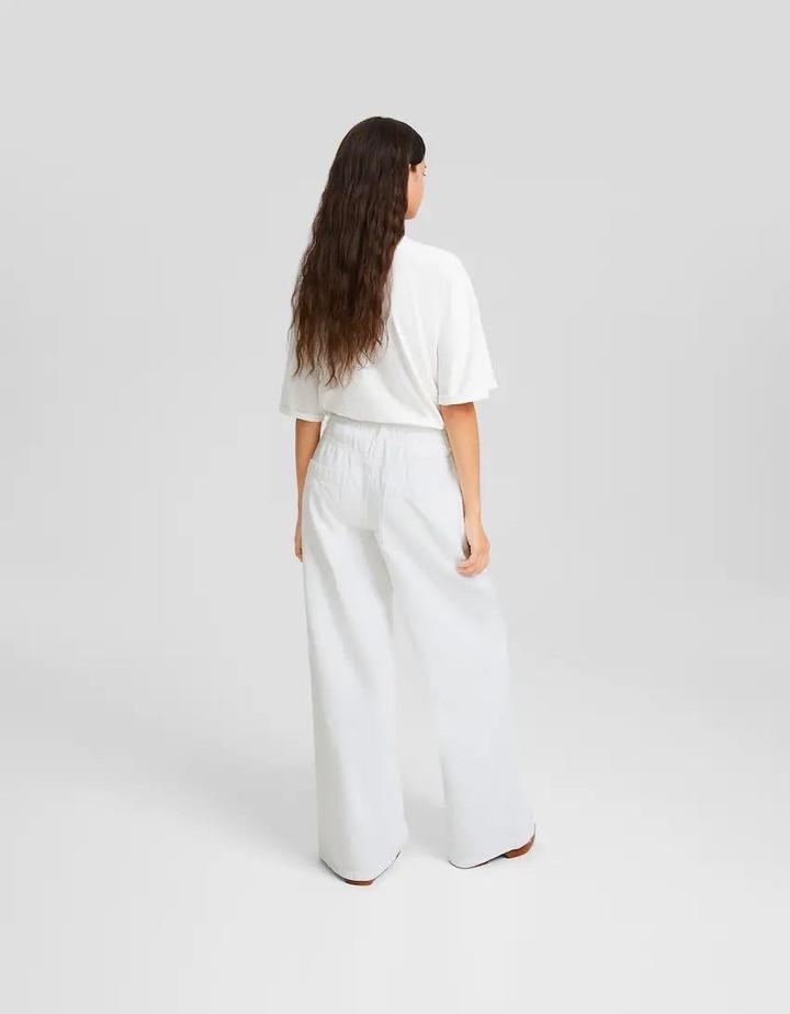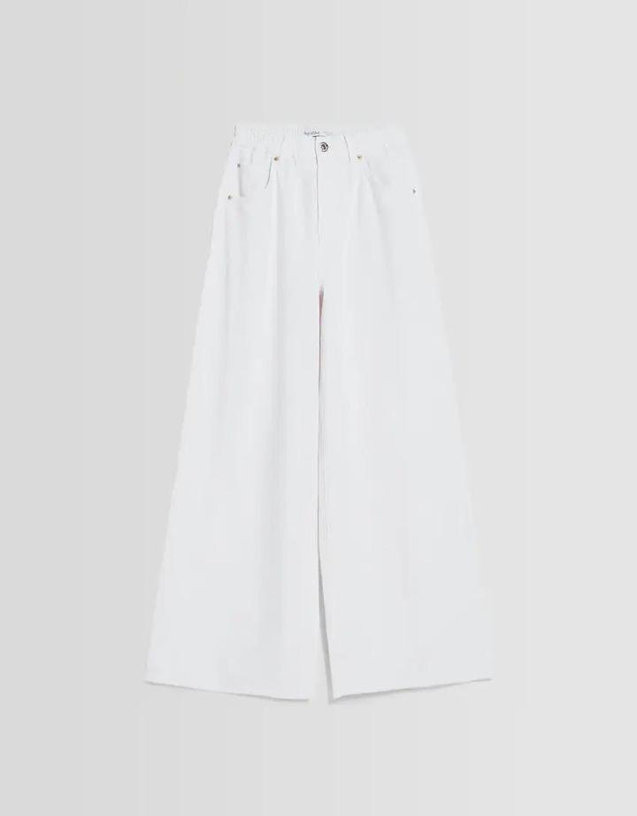 Белые джинсы на высокой посадке. Широкие, тонкие. Артикул: 600801