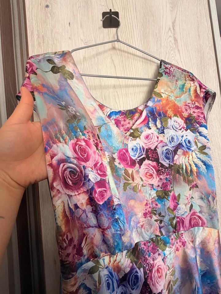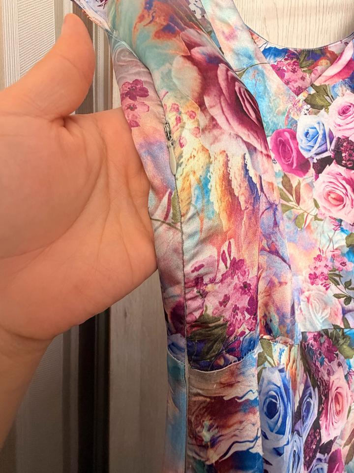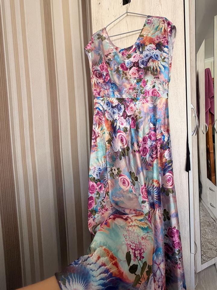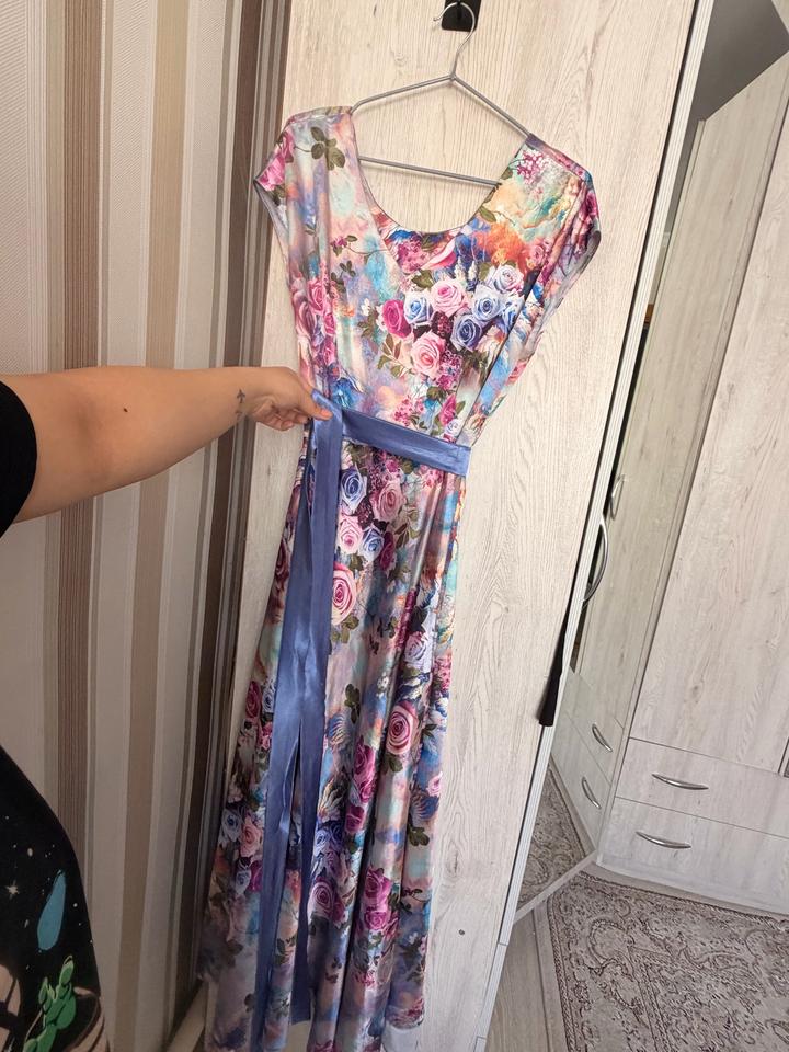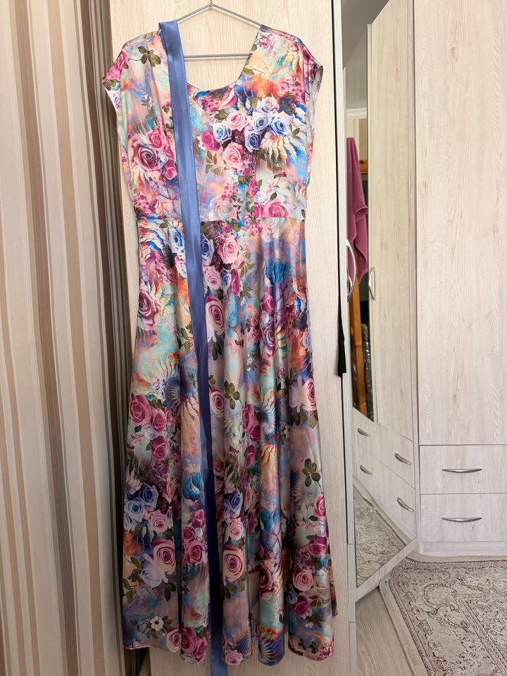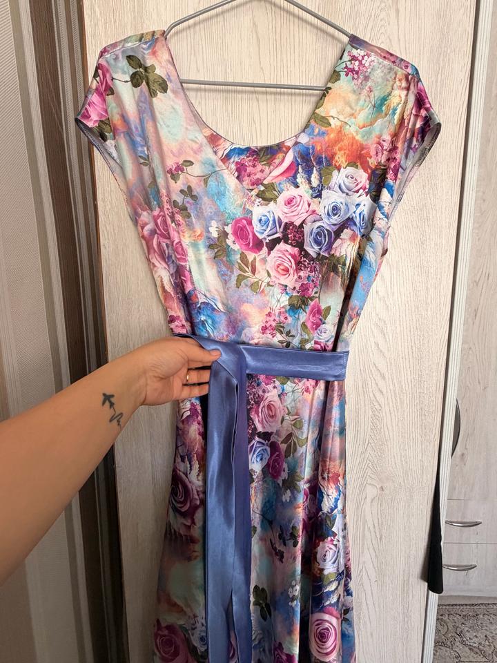 Яркое цветочное платье с поясом (пошив на заказ)M