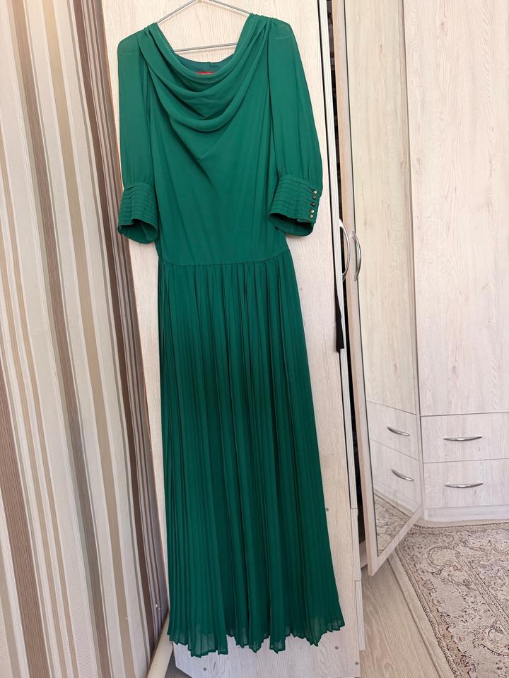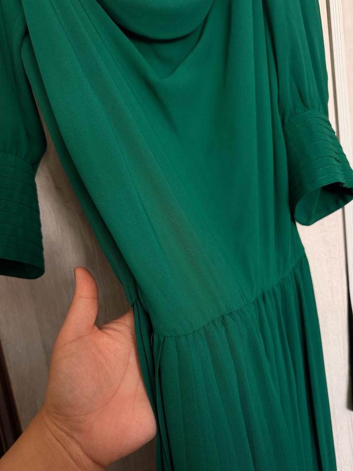 Очень красивое и утончённое платье в благородном изумрудном цвете ✨ Смотрится дорого и аккуратно, идеально для особых случаев. * лёгкая струящаяся ткань (шифон) * есть подклад — не просвечивает * изящная драпировка у горловины * рукава 3/4 с декоративными пуговицами * приталенный верх * юбка плиссе — красиво движется при ходьбе * длина миди/макси ✔️ Очень женственное и нежное ✔️ Подойдёт на мероприятие, той, праздник ✔️ Визуально стройнит и вытягивает силуэт Артикул: 601431