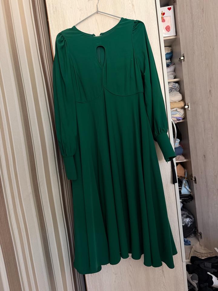 Элегантное базовое платье в насыщенном зелёном цвете 🌿 Минимализм + красивый крой — смотрится очень аккуратно и дорого * плотная, качественная ткань (не просвечивает) * аккуратный вырез с капелькой спереди * длинные рукава с манжетами * слегка присборенные плечи — добавляют форму * свободная юбка, красиво струится * молния сзади * мягкий приталенный силуэт ✔️ Универсальное: можно и на мероприятие, и на каждый день ✔️ Смотрится сдержанно, но стильно ✔️ Удобное и не сковывает движения Артикул: 601444