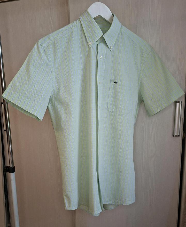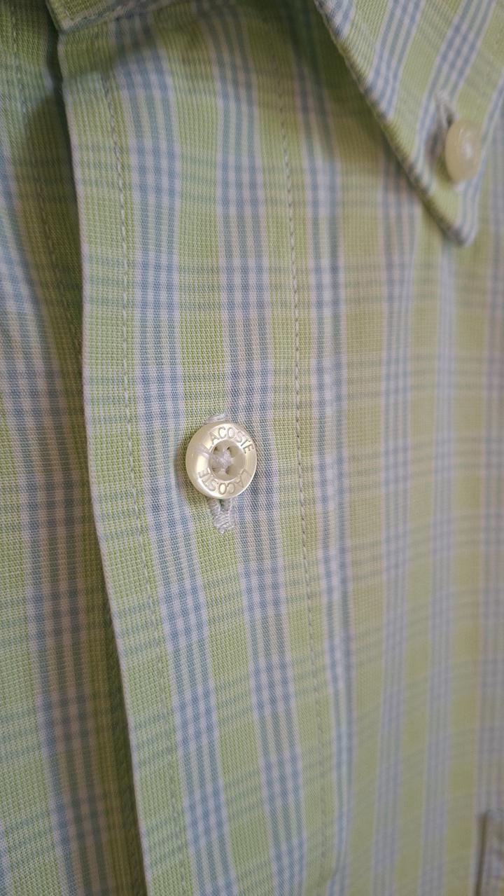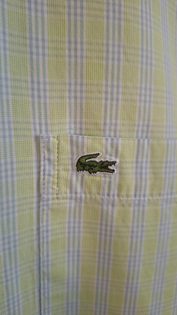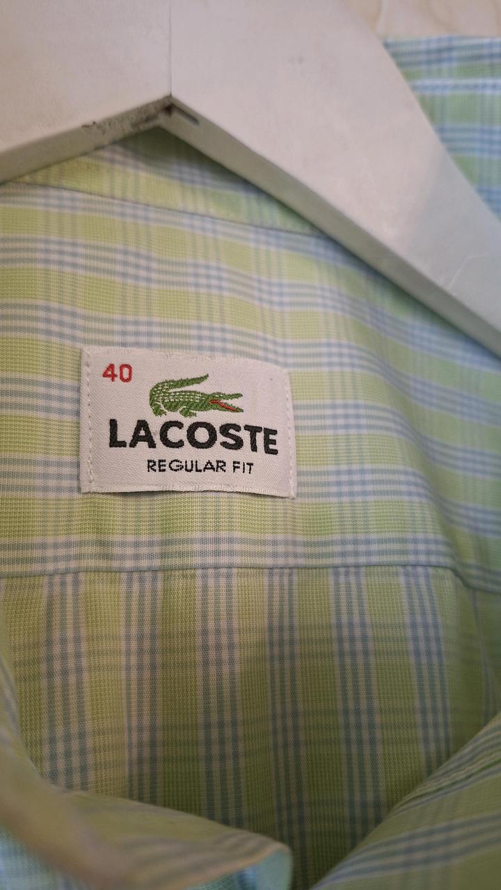 Продам роскошную рубашку от мирового бренда Lacoste! 100% оригинальное изделие! Новая, аж хрустит! Рубашка соткана из премиального 100% хлопка, в невероятно нежной, практически невесомой выделки! На нагрудном кармашке имеется вышивка крокодильчика, каждая пуговица с гравировкой Lacoste! Модель regular fit, по вороту 40! Такая рубашка подчеркнёт Вашу индивидуальность и сделает образ поистине совершенным! Рубашка в очень красивом цвете голубого и мятного цветов в клетку! Маркировка 40, на 48/50 Артикул: 601447