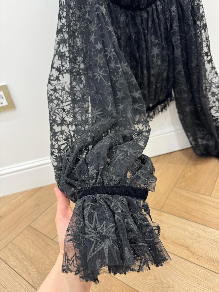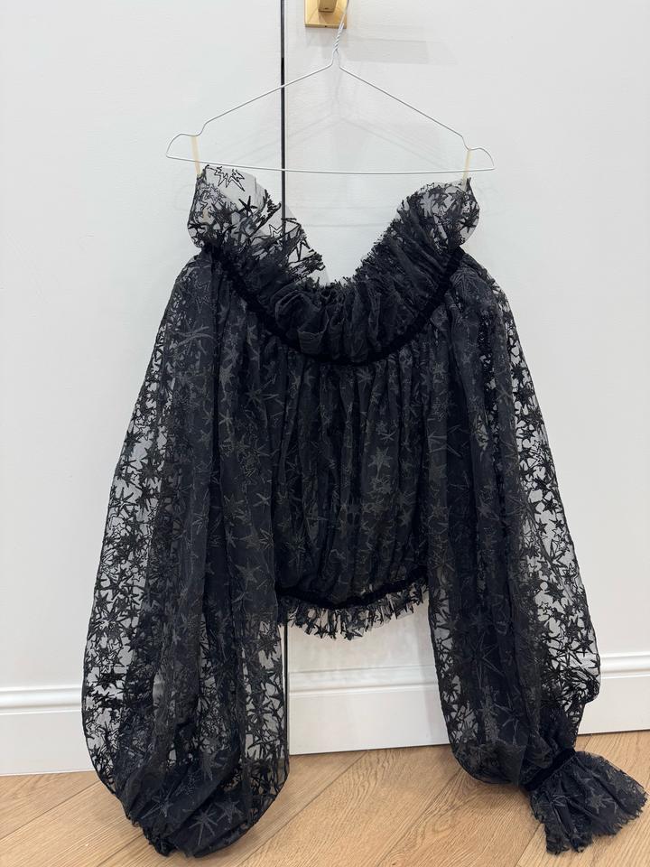 Открытые плечи, рукава фонарь, под блузу я надевала топ. Можно стилизовать по разному, универсальная вещь. Размер 8 Артикул: 601451