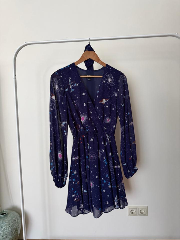 Шифоновое платье с подкладом с приростом звезд, созвездий и планет, российского бренда toptop Размер Xs/S Одевалось 1 раз, состояние хорошее Артикул: 601461