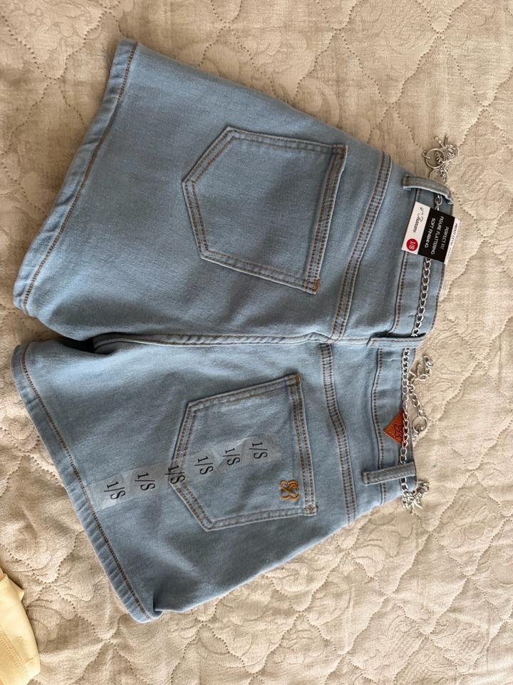 Шорты Бренда Red Bottoms джинсовые(новые), размер s. Красивая посадка, эластичный материал, железный ремешок-цепь Артикул: 601540