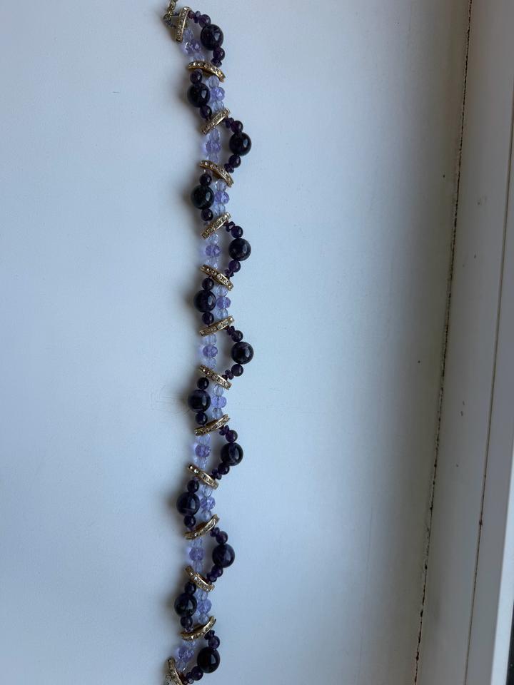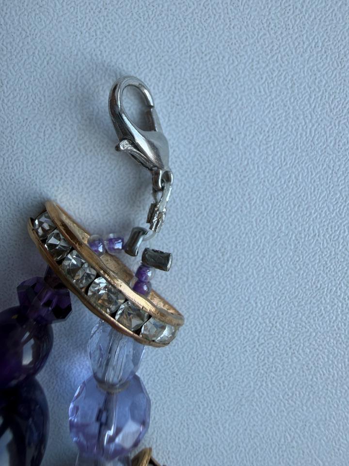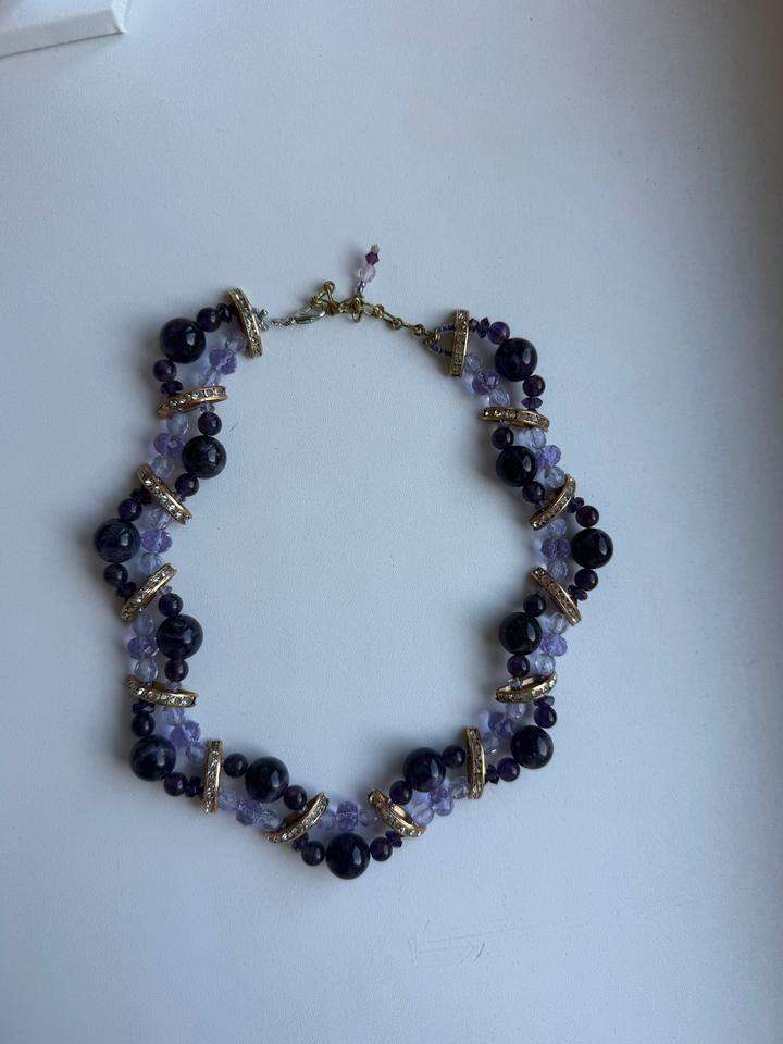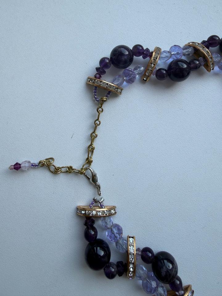 Ожерелье из аметиста ручная работа. Длина всего украшения 34 см. Отдаю дёшево, потому что застежка ломалась, я починила сама- украшение держит на шее. Хорошо для фотосессии. Артикул: 601591