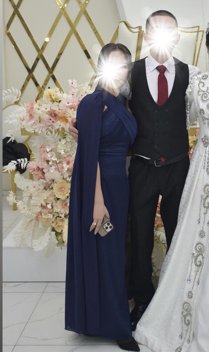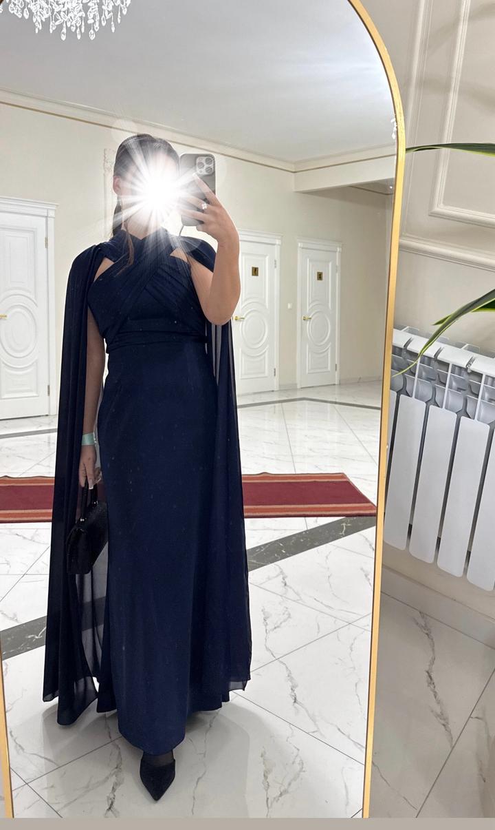 Темно-синее вечернее платье в пол ✨ Элегантная модель с накидкой на рукавах, красиво сидит по фигуре, выглядит дорого и эффектно. Идеально на свадьбу, выпускной, фотосессию или любое торжество. Надевалось 1 раз , состояние отличное. Подходит для девушек маленького роста(мой рост 155-157) Сзади корсет. Размер S-M. Артикул: 601631