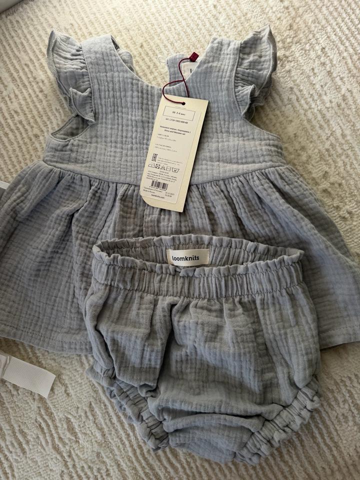 Продам новый набор платье и трусики от loomknits на возраст 3-6 месяцев Отличный вариант на подарок Подарочная коробка и пакет имеются Артикул: 601648
