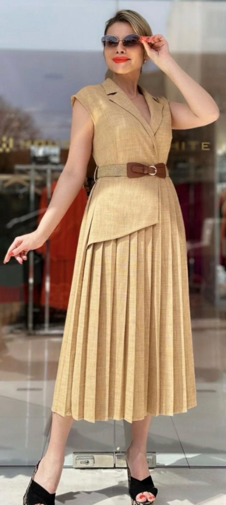 Стильный льняной костюм Платье. Для выхода и офиса. Отличного качества. Турция Новый 36S, 42XL Последние две штуки. Артикул: 601666