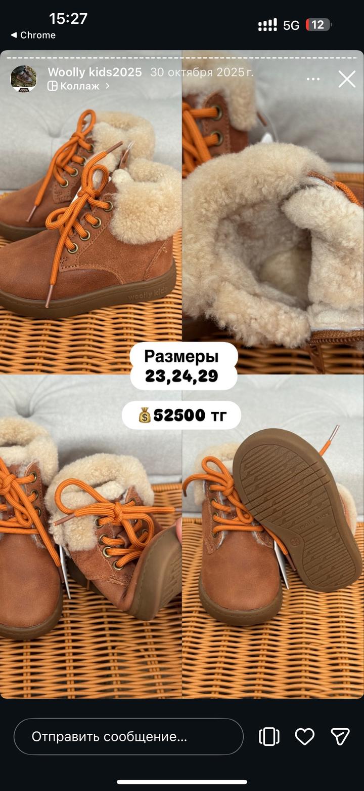 Зимние ботинки woolly kids Натуральная кожа, мех натуральная овчина Артикул: 601718