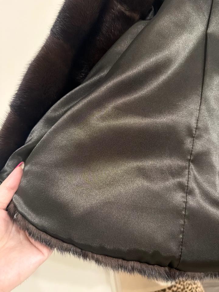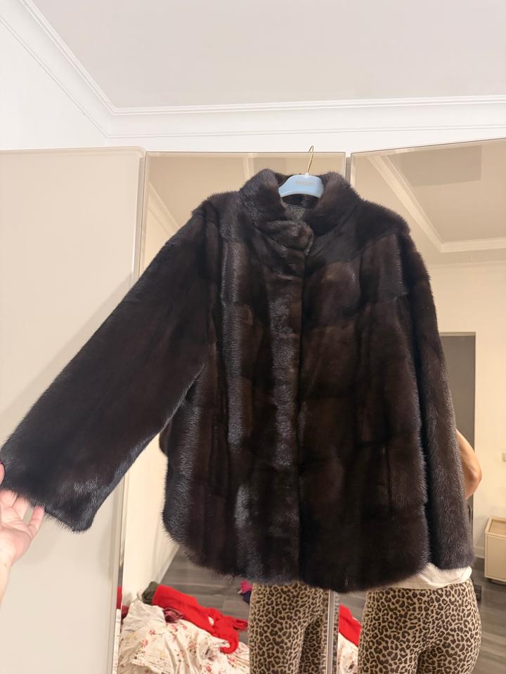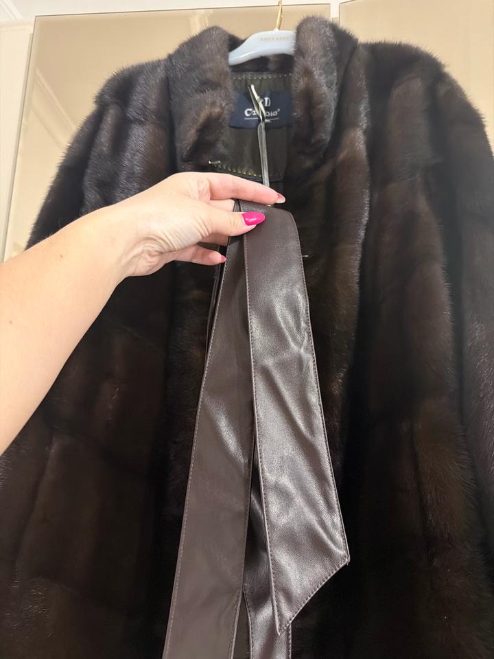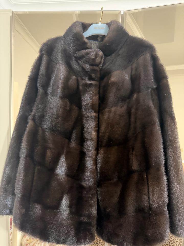 Норковая шуба абсолютно новая поперечного кроя состойким воротником имеется пояс. Размер 44-52. Цвет коричневый Артикул: 601744
