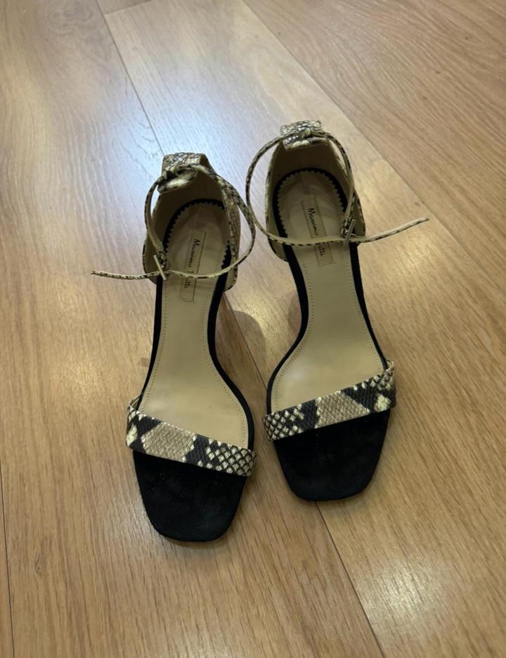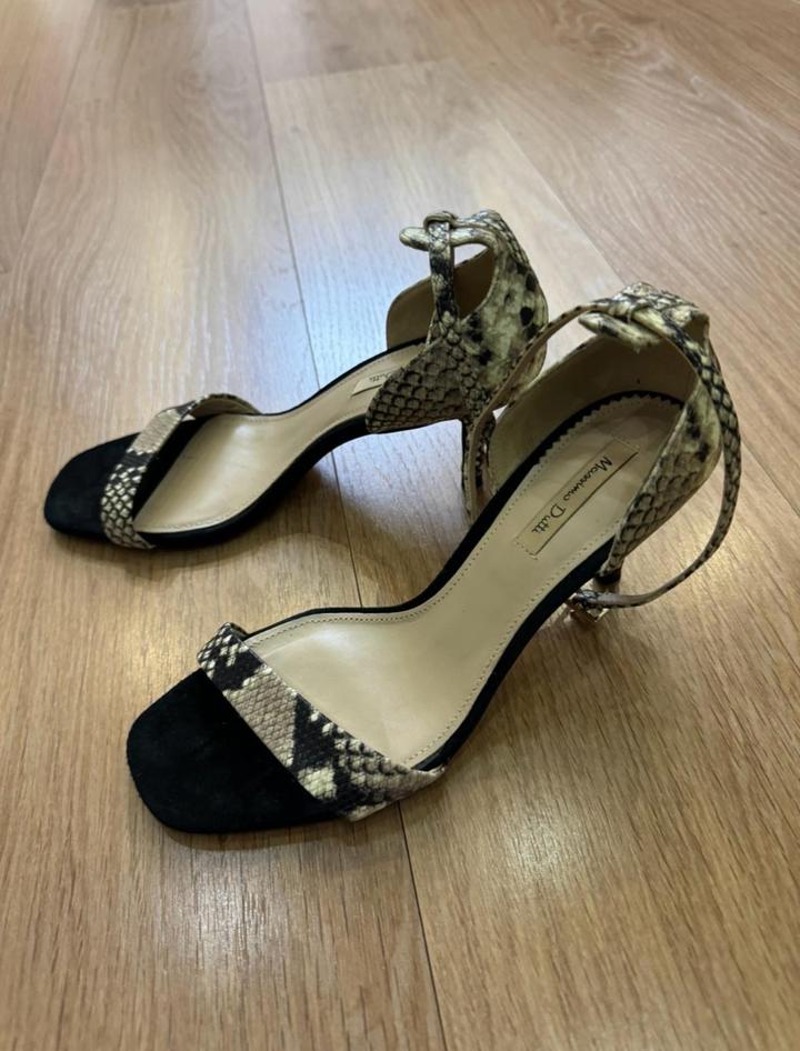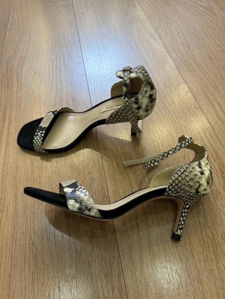Стильные босоножки Massimo dutti. Устойчивый, комфортный каблук. Характеристики: • Материал верха: натуральная кожа, натуральная замша ( под рептилию) • Цвет: под рептилию, черная замша • Высота каблука: 4-5 см • Размер: 36 • На узкую ножку‼️ Состояние: В носке пару раз были. Подошва и каблук в отличном состоянии. Эффектные, удобные, под все. Артикул: 601787