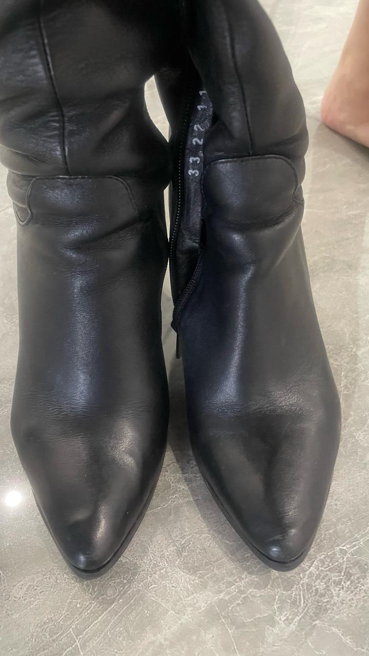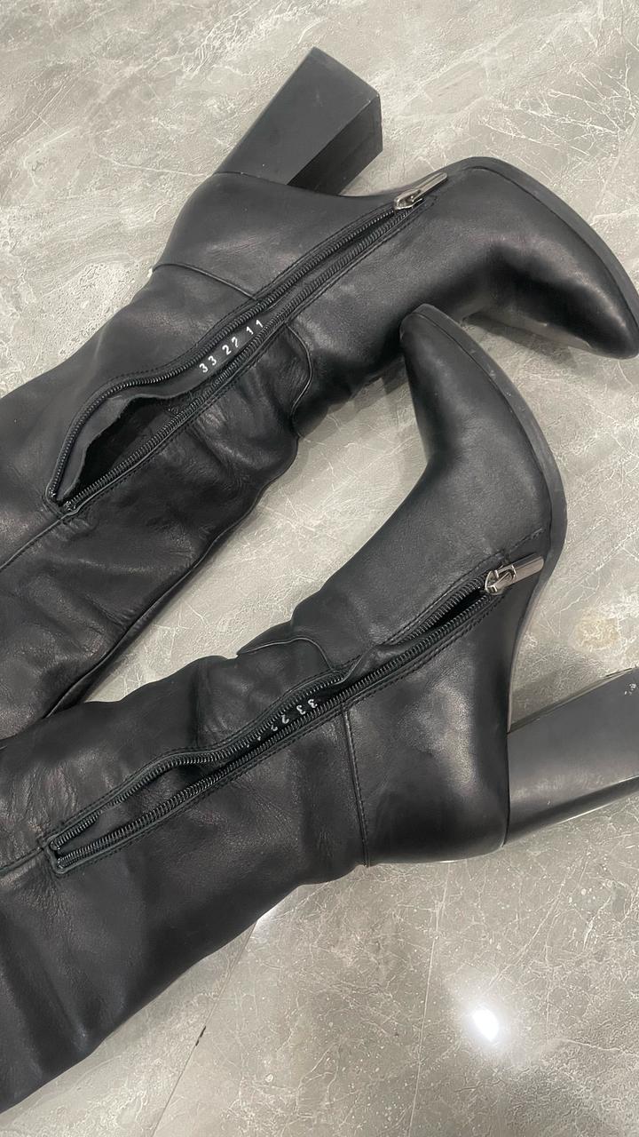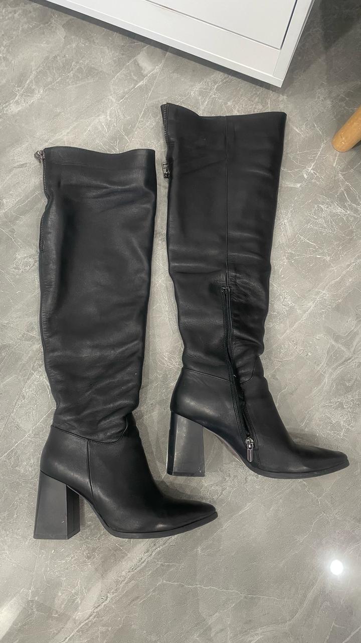 Сапоги ботфорты, колено закрывают. Каблук 6-7 см. Натуральная итальянская кожа. Внутри флис. В идеальном состоянии без дефектов. Артикул: 601842