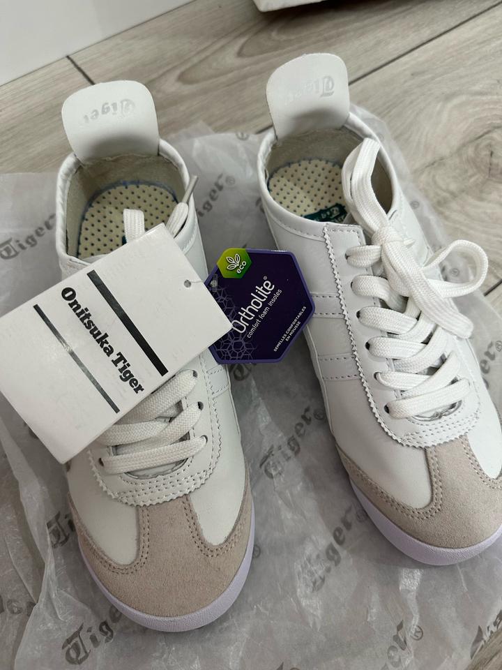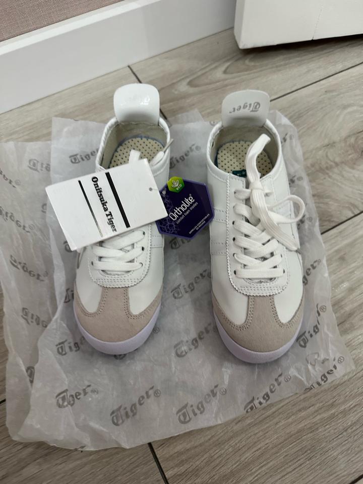 Абсолютно новые кеды кроссовки от Asics Onitsuka Tiger. 37р, 24см по стельке. Комбинированная модель с кожей натуральной и экокожей. Заказала на сайте, но размер на подошел. Белый и беж, будет супер и с платьем и с брюками. Артикул: 601859