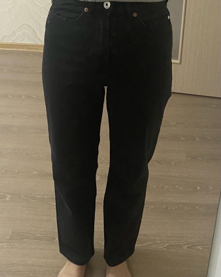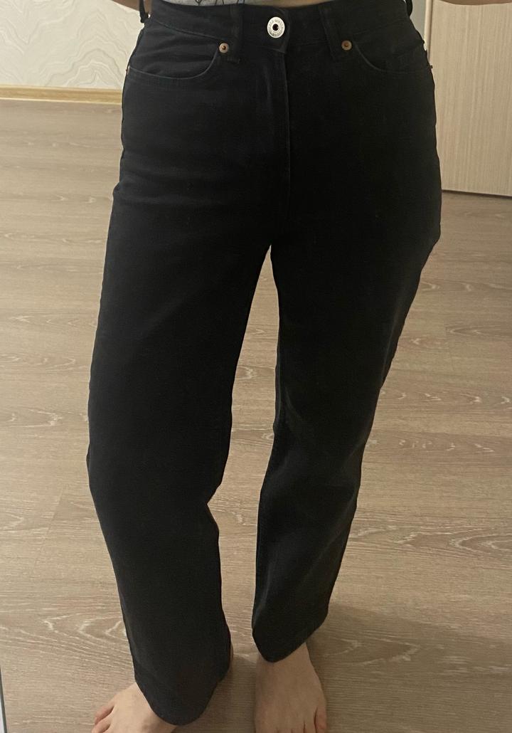 Черные джинсы H&M прямого кроя, размер XS, на рост до 160 см. Очень плотная деним, поэтому подойдет худеньким либо подросткам. Артикул: 601882