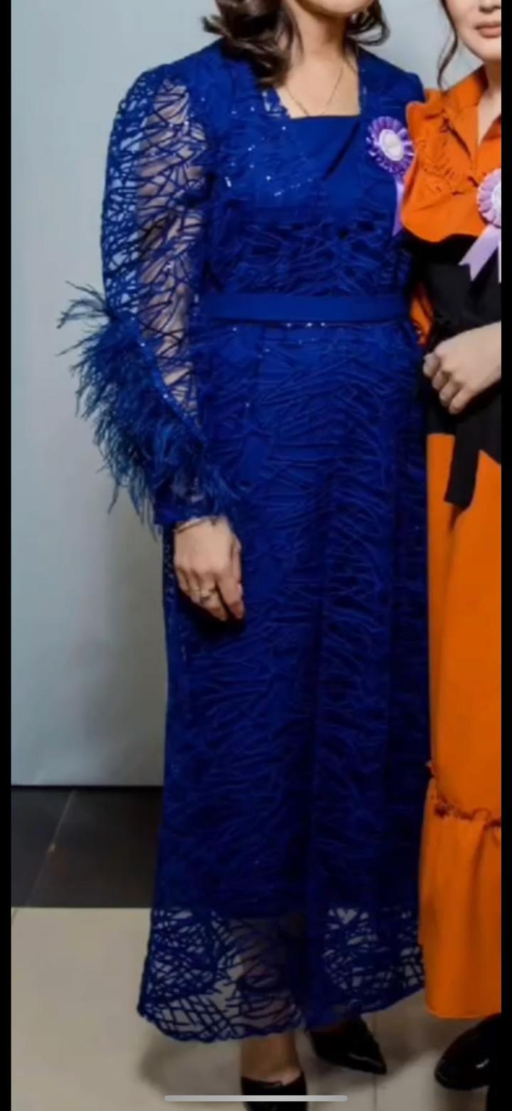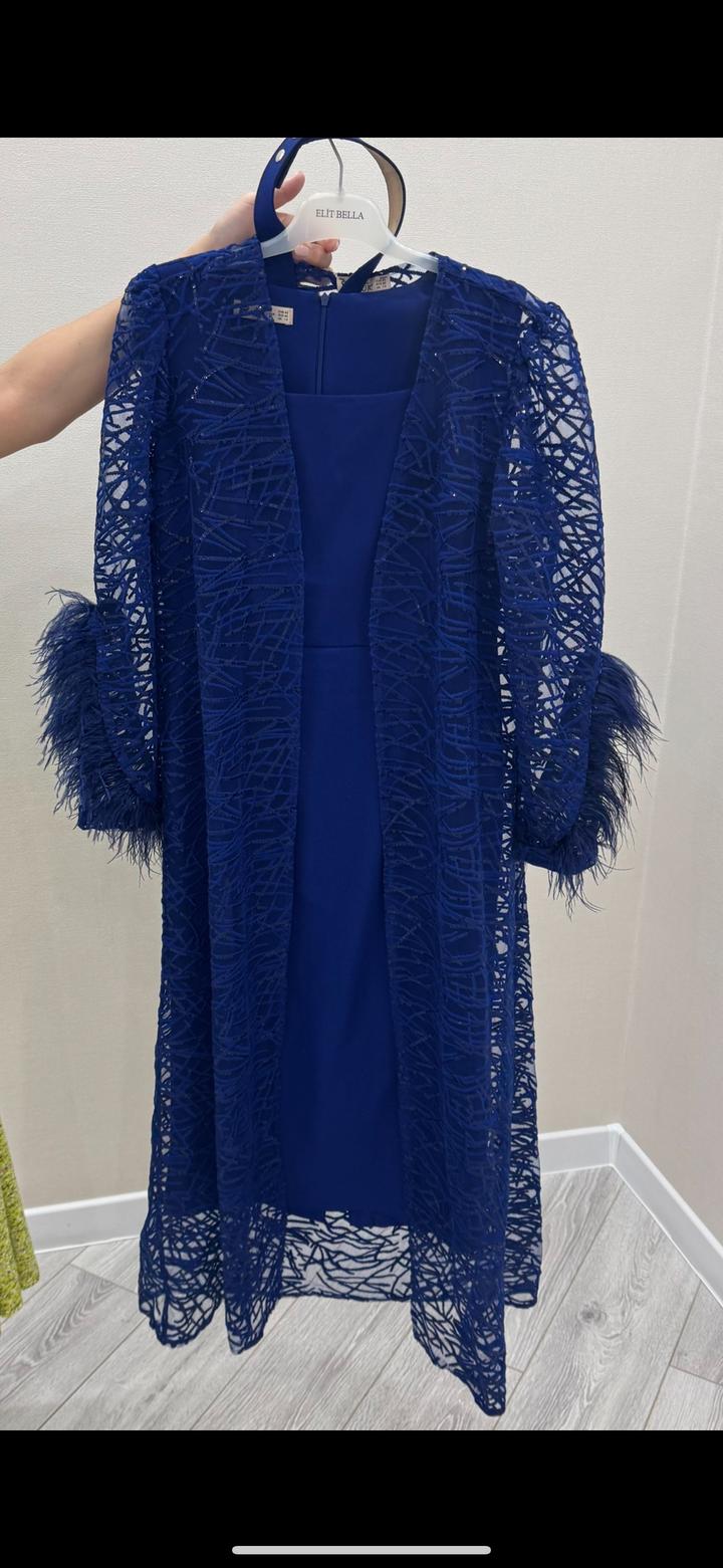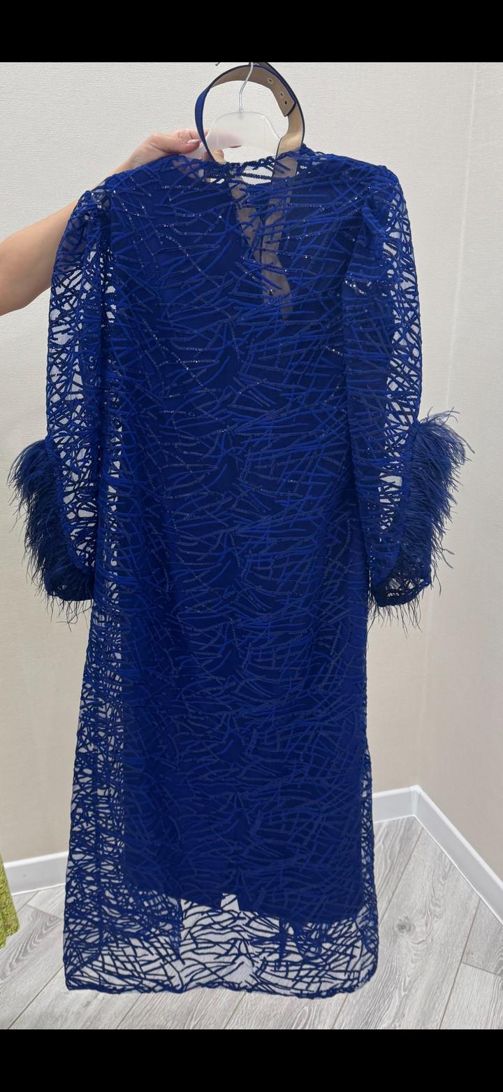 Размер 46 Цвет синий Платье с накидкой и ремнем Артикул: 601958