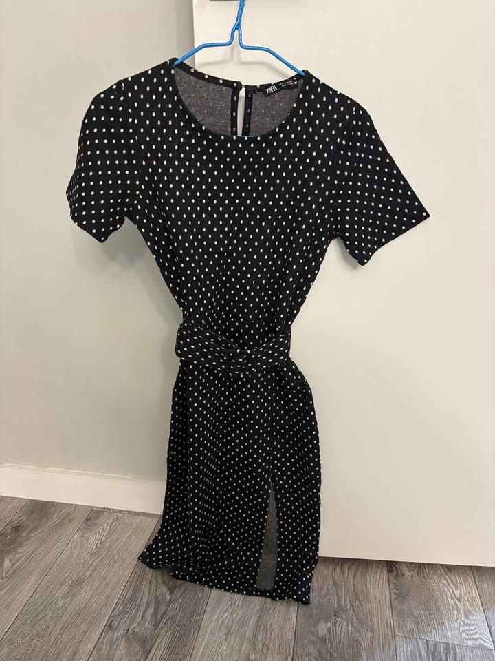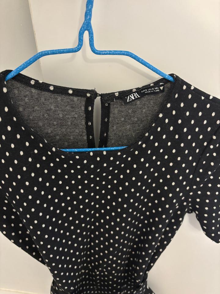 Платье Zara черное в белый горошекS