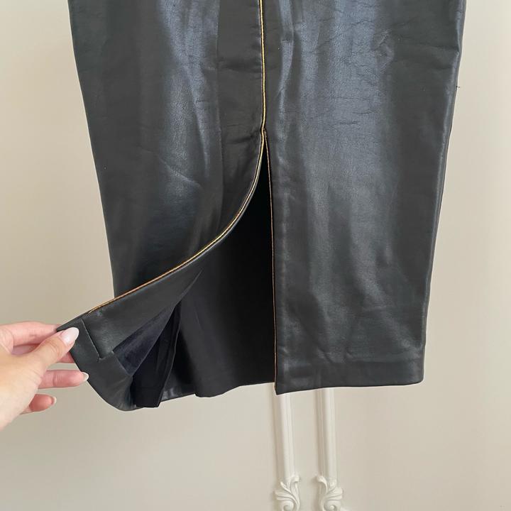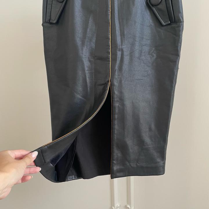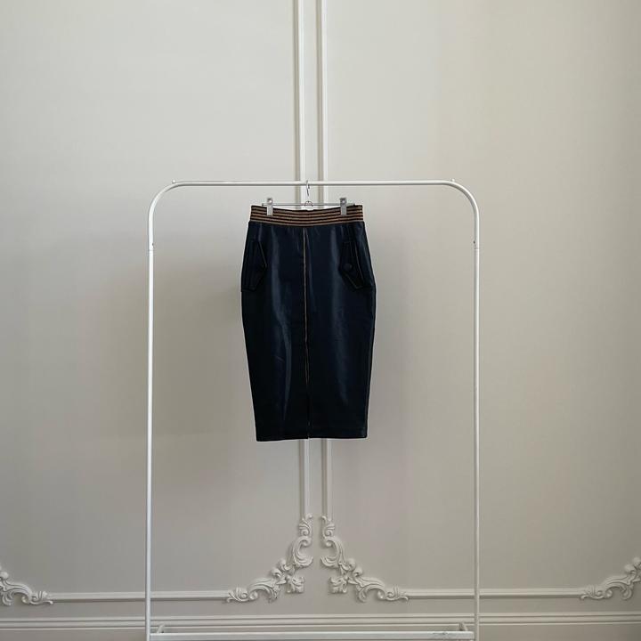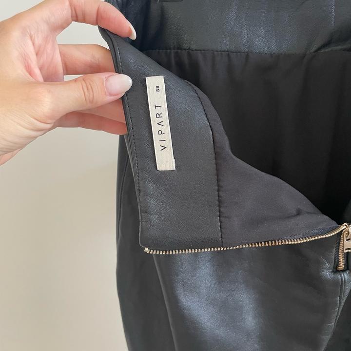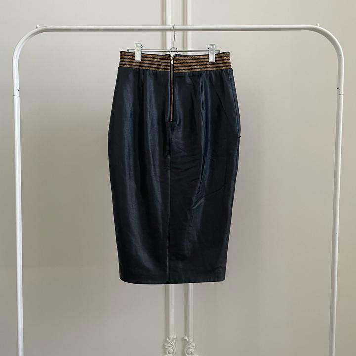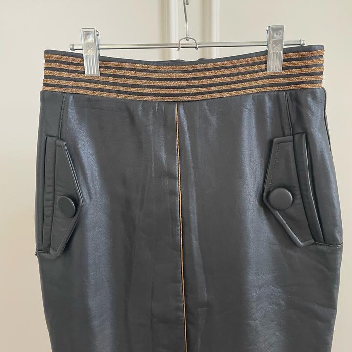 Классическая юбка из натуральной мягкой кожи, с подкладом. Пояс на тугой резинке с вышивкой из золотистой нити. Евро размер 36 Артикул: 602081