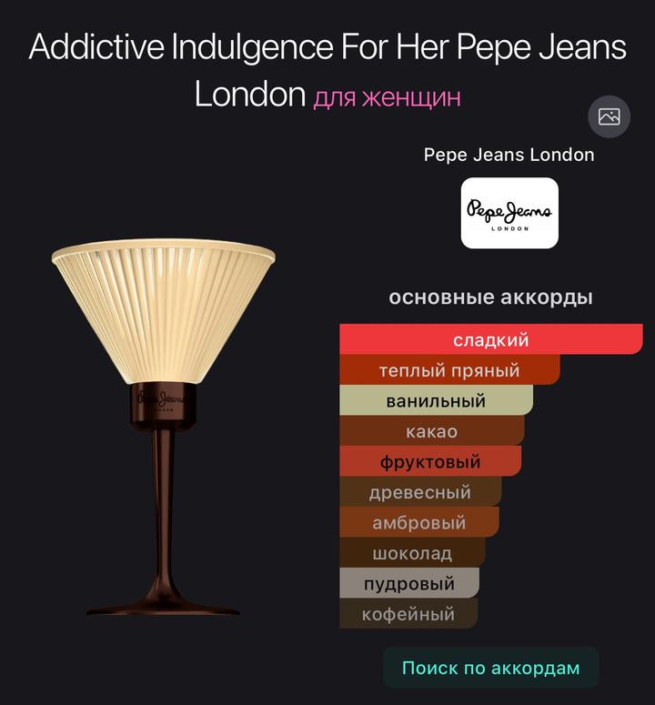 Pepe Jeans Addictive indulgence for her, 30 ml, без пары пшиков. Почти новый. Красивый гурманский аромат на тему шоколада и сливы. Продаю так как покупала вслепую в Летуаль, но оказался похож на мой любимый Banana Republic Tobacco and Tonka Bean) Артикул: 602180