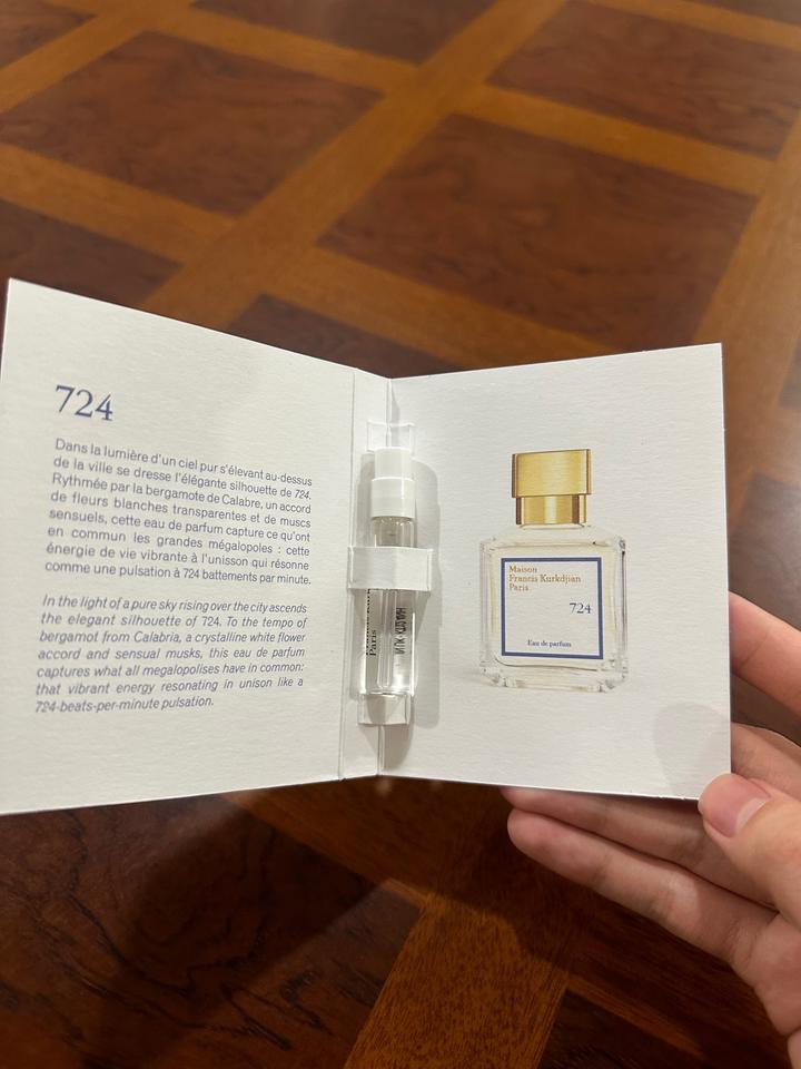 Пробник парфюма Maison Francis Kurkdjian Paris 724. 1.7ml Отличный вариант положить в сумочку или же познакомиться послушать парфюм. Привезли подарком из Канады, но я не пользуюсь парфюмами. Артикул: 602240