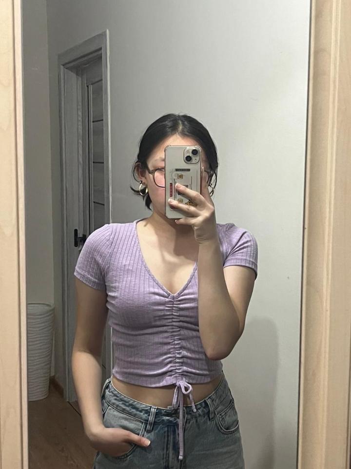 Сиреневый топ из нью йоркер, красиво подчеркивает фигуру Артикул: 602262
