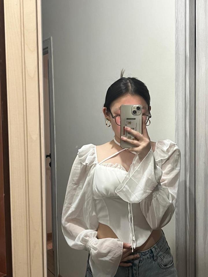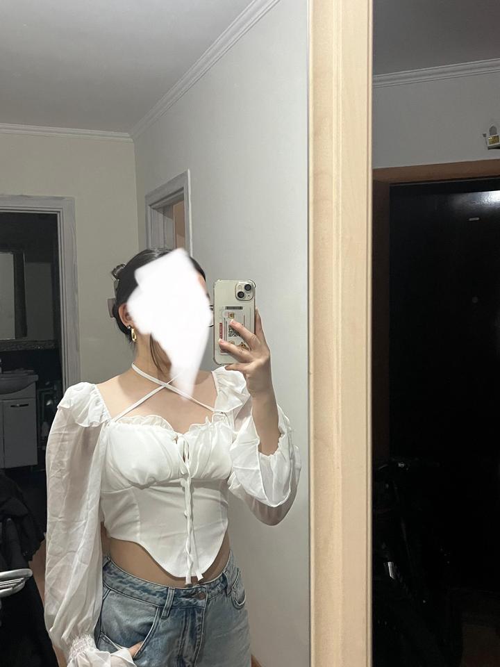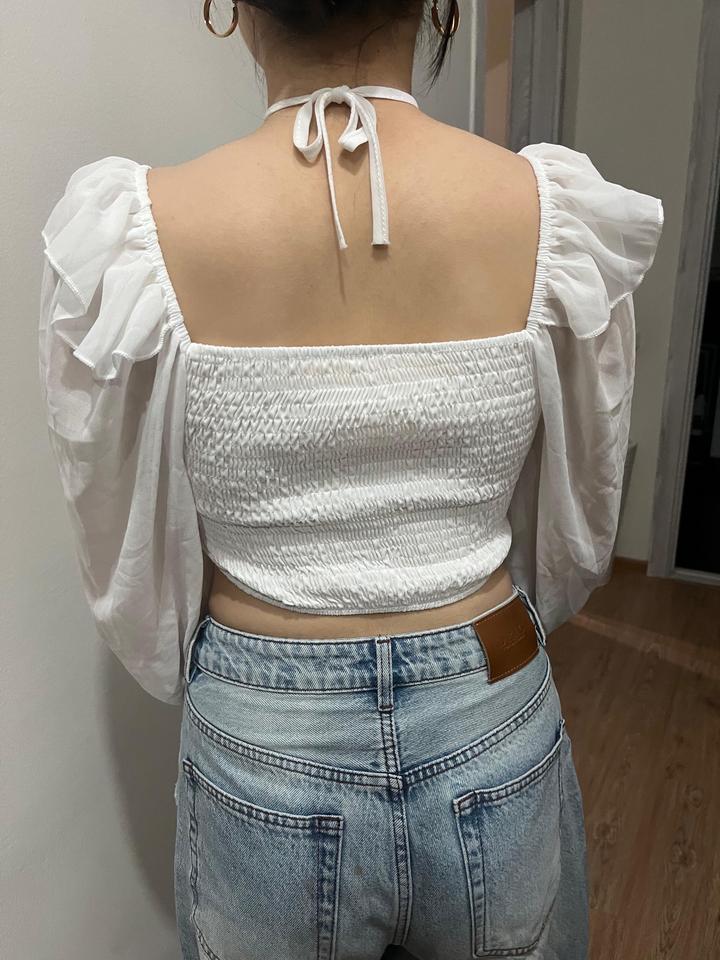 Белая кофта, блузка, очень красивое, нарядное, завязки можно снимать и завязывать как хотите, кофта новая ни разу не носила, не подошел размер Артикул: 602274