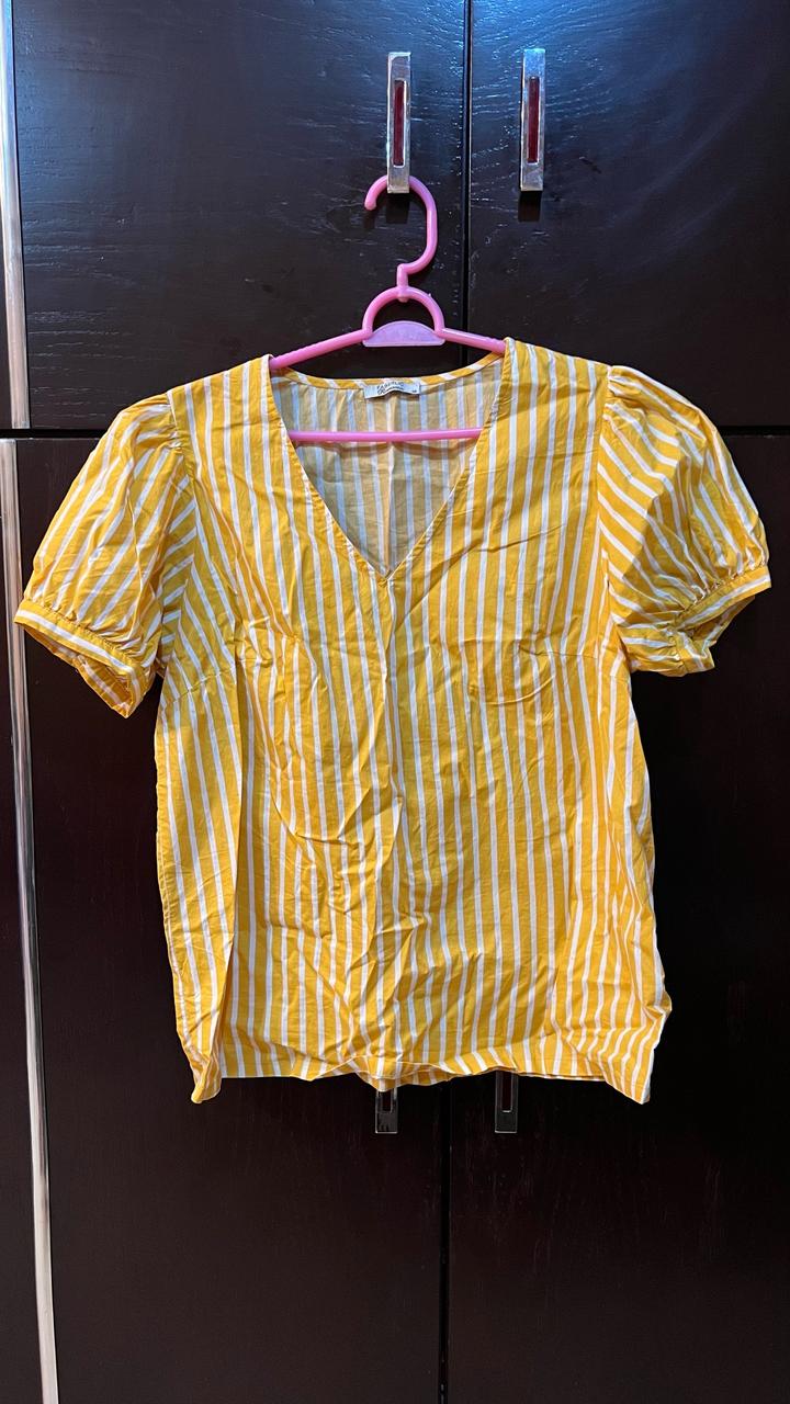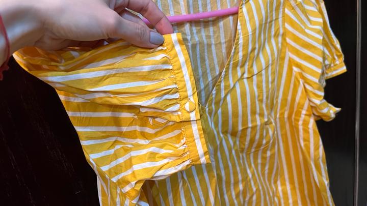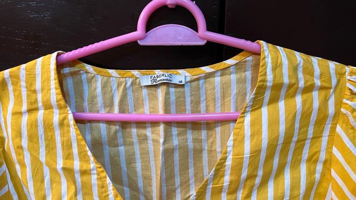 Тепло-желтого цвета в полоску На рукавах пуговички Размер 48 Просторная, дышащая Артикул: 602309