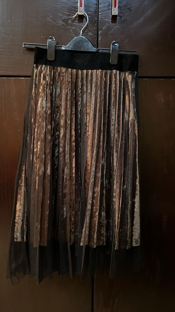 Ниже колена Подклад - велюр, верх плиссированная сеточка Талия на резинке Ориентировочно размер М Артикул: 602318