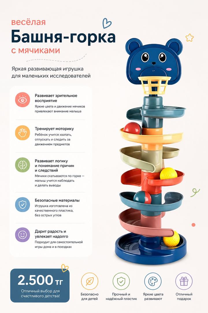 башня горка для детей , ребенок залипает и может сам долго играть. в комплекте идет 7 шариков . мои дети от этой игрушки в восторге 😍 Артикул: 602364
