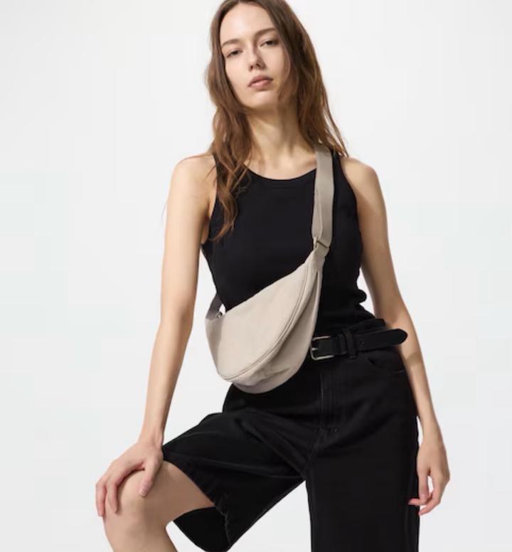 мини-сумка через плечо от бренда Uniqlo (Uniqlo Round Mini Shoulder Bag), которая стала вирусным хитом благодаря своей практичности и минималистичному дизайну. В интернете её часто называют «сумкой-полумесяцем» или «бананкой». Артикул: 602425