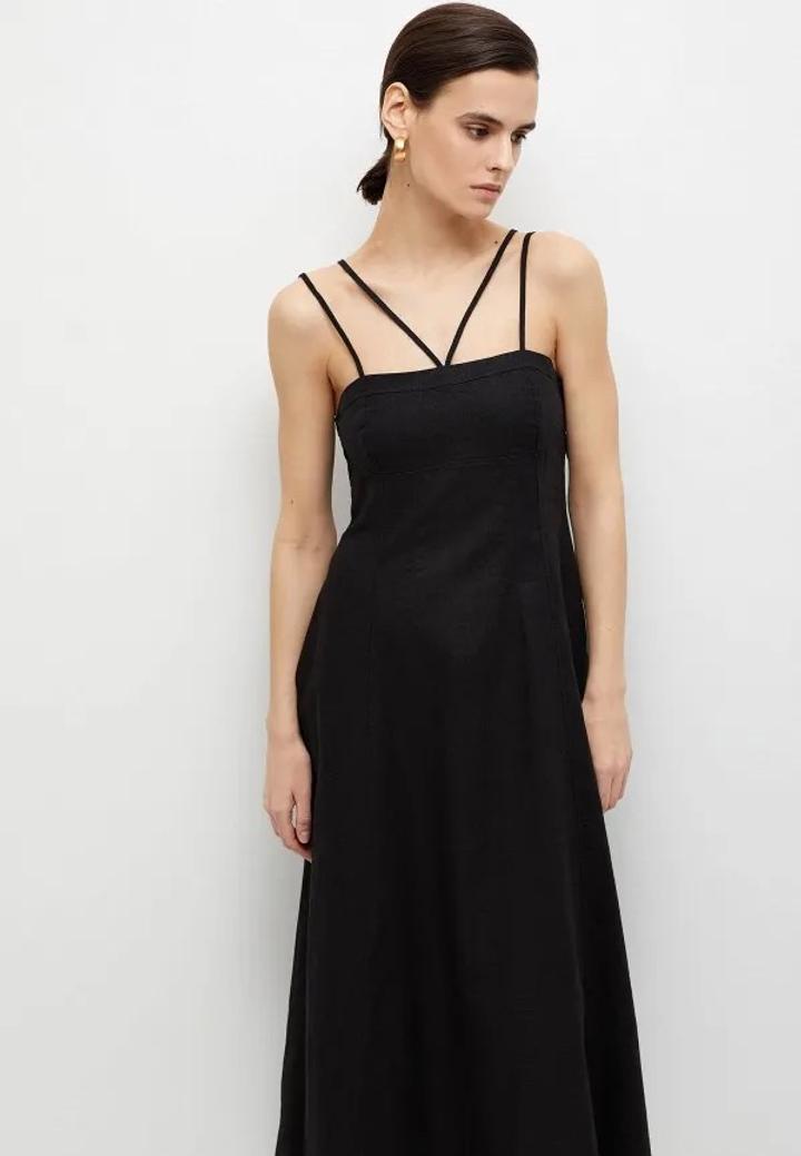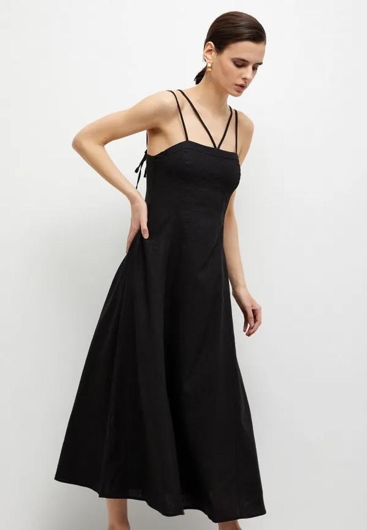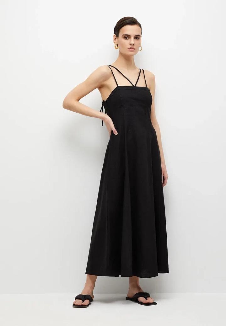 Лаконичное платье-сарафан Sela из смеси льна и хлопка — идеальный баланс комфорта и минимализма. Лёгкая, дышащая ткань приятна к телу и отлично подходит для тёплой погоды. Модель на тонких перекрёстных бретелях с аккуратным лифом и мягко расклешённой юбкой создаёт женственный, вытянутый силуэт. Чистые линии и чёрный цвет делают платье универсальным: легко стилизуется как в повседневных, так и в более собранных образах. Носите с сандалиями, мюлями или кедами — база, которая всегда работает. Артикул: 602436