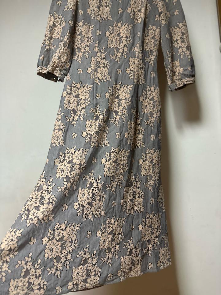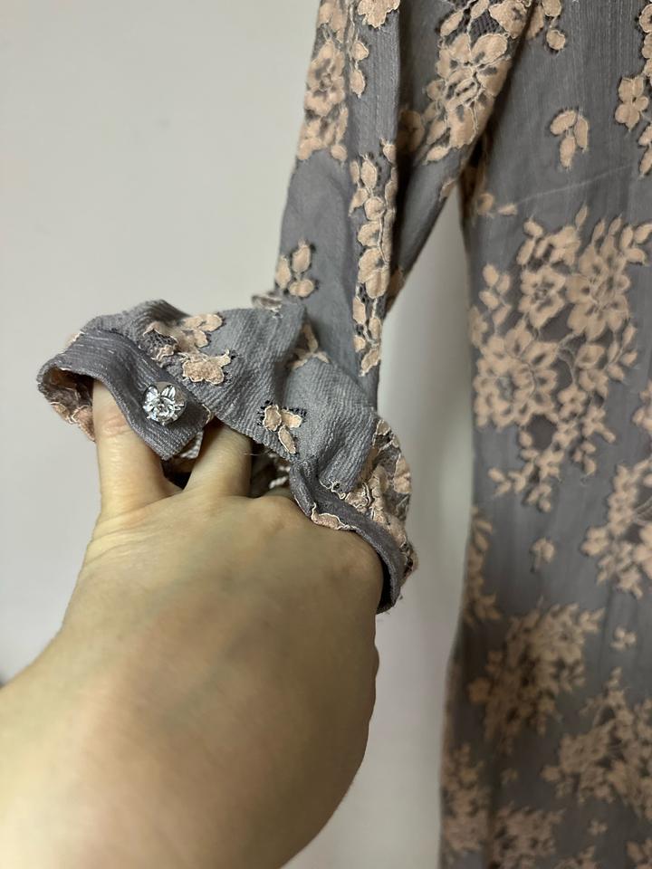 Платье с тонким ретро-шармом: приглушённый серо-нюдовый оттенок и изящный цветочный узор создают атмосферу винтажной элегантности. Полуприталенный силуэт мягко подчеркивает фигуру, а аккуратные рукава и лёгкое расширение к низу добавляют женственности. Для утончённых и благородных образов. Артикул: 602456